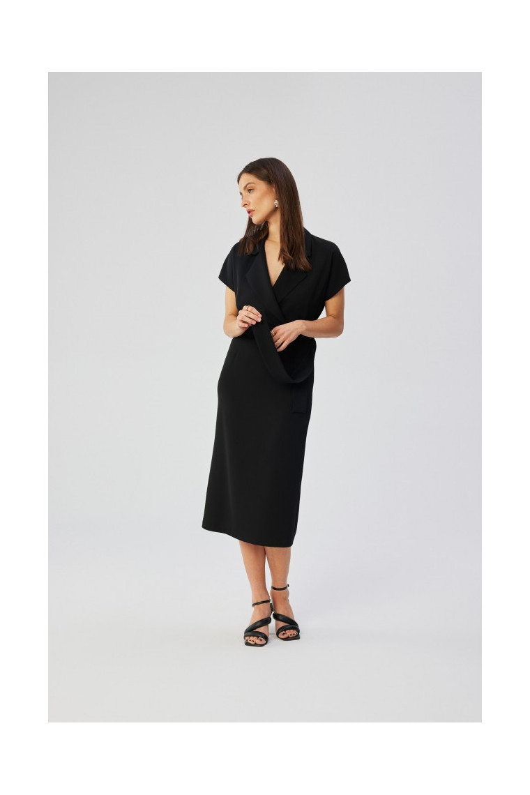 Stylove S363 Kreklu kleita ar kaklasaites jostu - melna