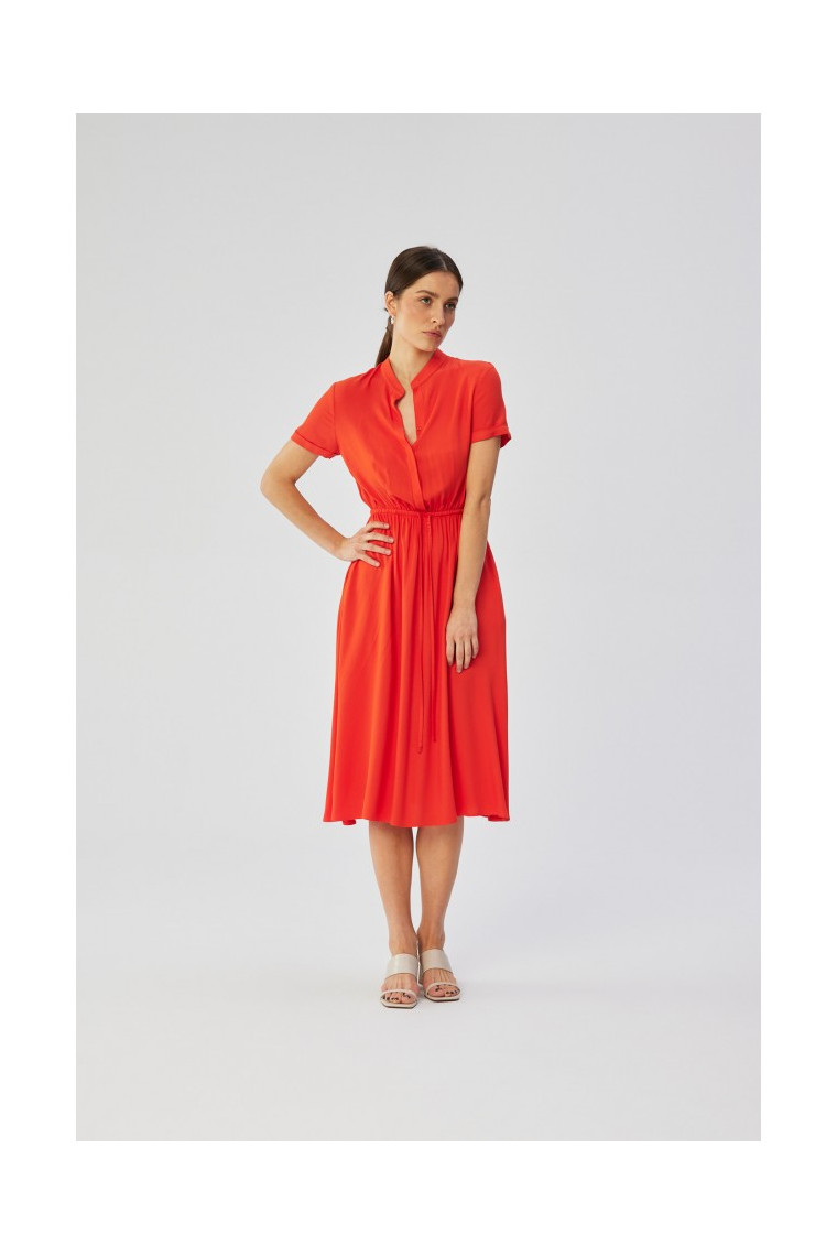 S366 Viskozes kleita ar aukliņu un sasietu vidukli - koraļļu krāsas