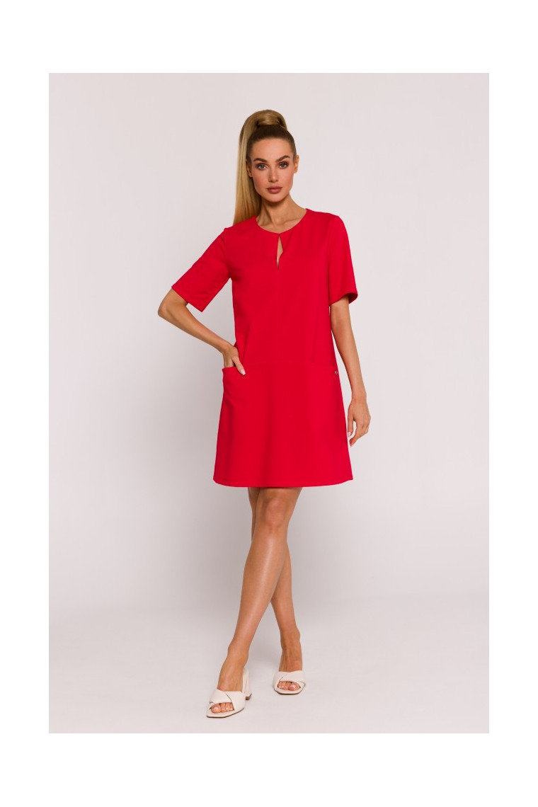 MOE M788 Trapecveida kleita ar priekšējām kabatām - sarkana