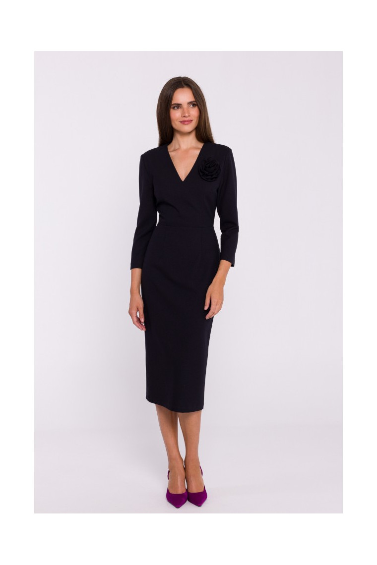Stylove S372 Ziedu zīmuļa kleita - melna