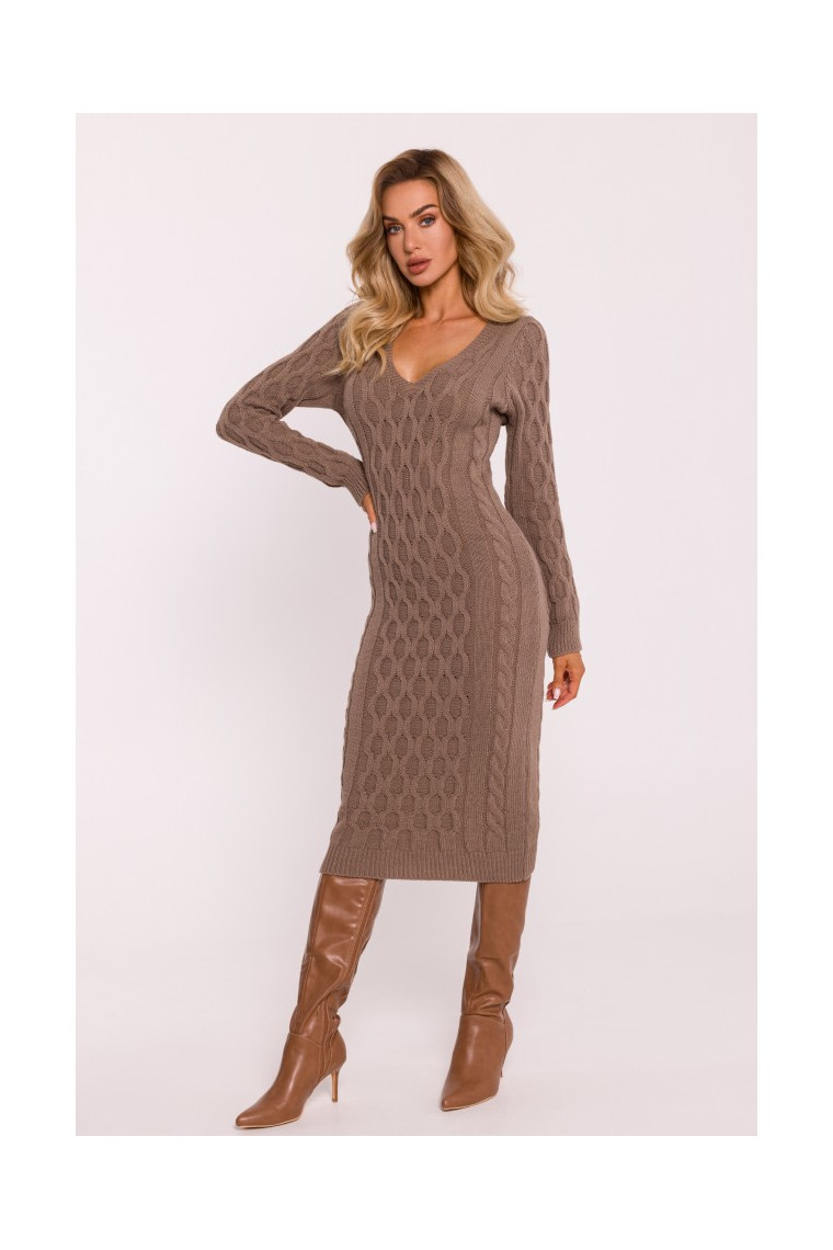 M824 Džempera kleita ar V veida apkakli - cappuccino