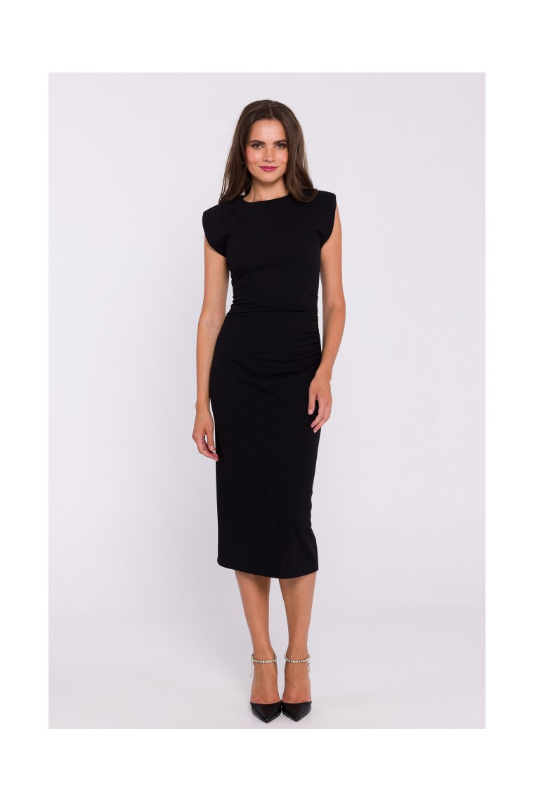 S382 Midi kleita bez piedurknēm - melna