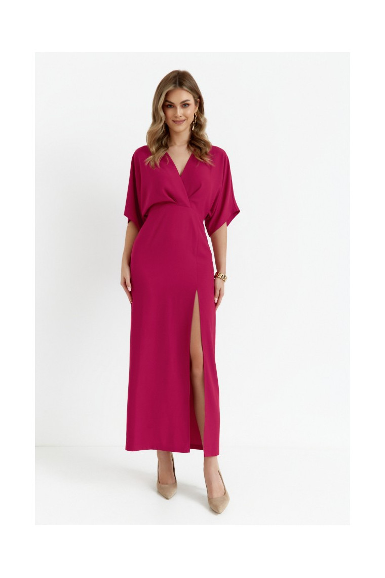 Mums patīk šīs maxi kleitas garais siluets, augsts kāju šķēlums un kimono piedurkņu dizains.