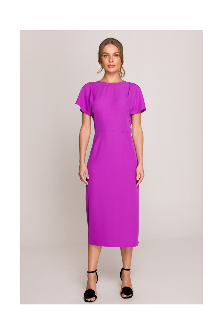 Stylove S398 Svītraina kleita ar šķēlumu sānos - lavandas krāsas