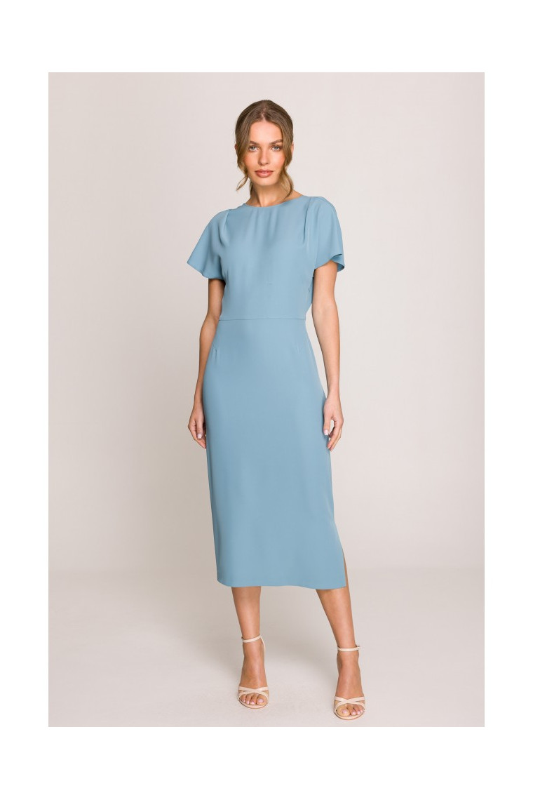 Stylove S398 Svītraina kleita ar šķēlumu sānos - debeszilā krāsā