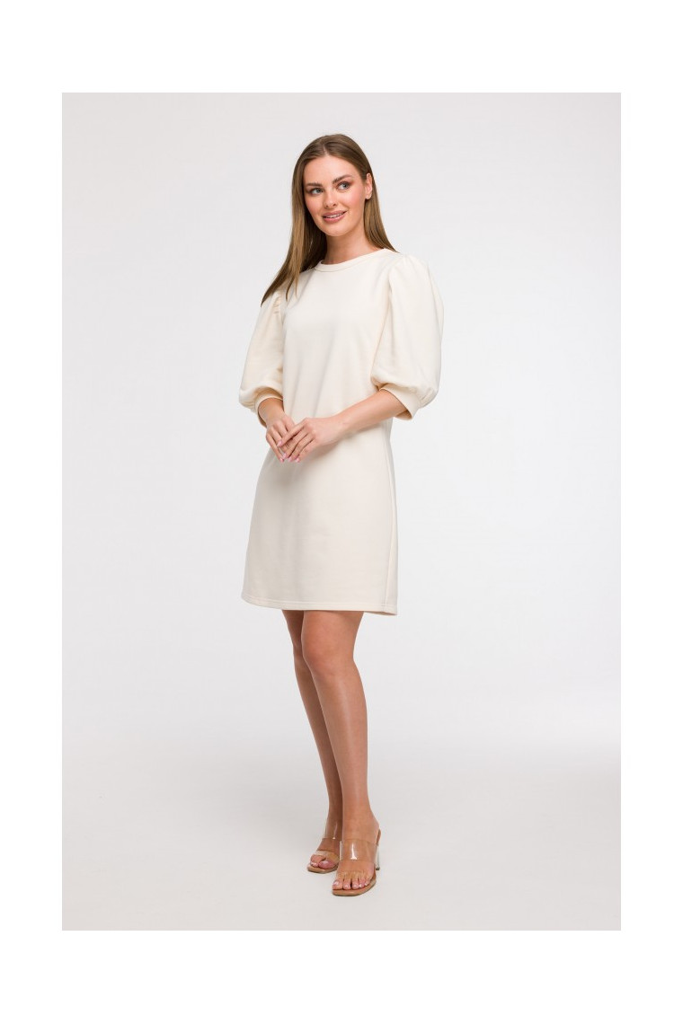 BEWEAR B291 A-line dress with puff sleeves - vanilla