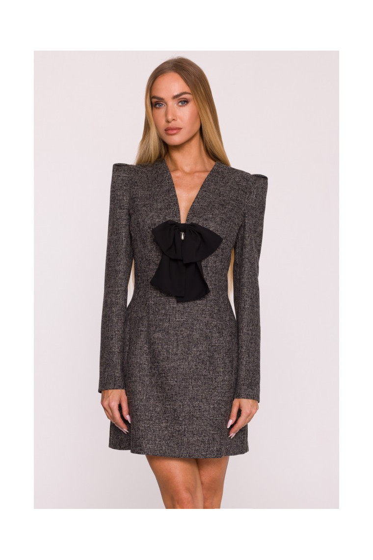 MOE M869 Tweed V-neck dress - black