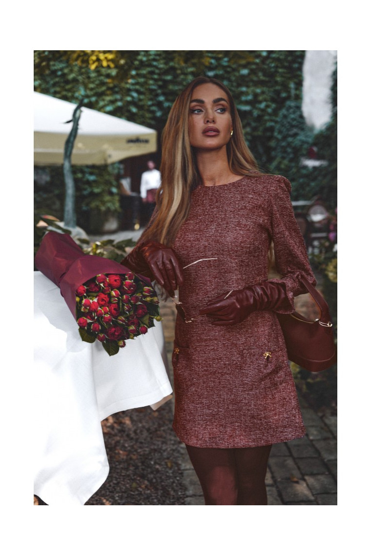 Sleeves: Long, gathered at the shoulders and with darts at the cuffs