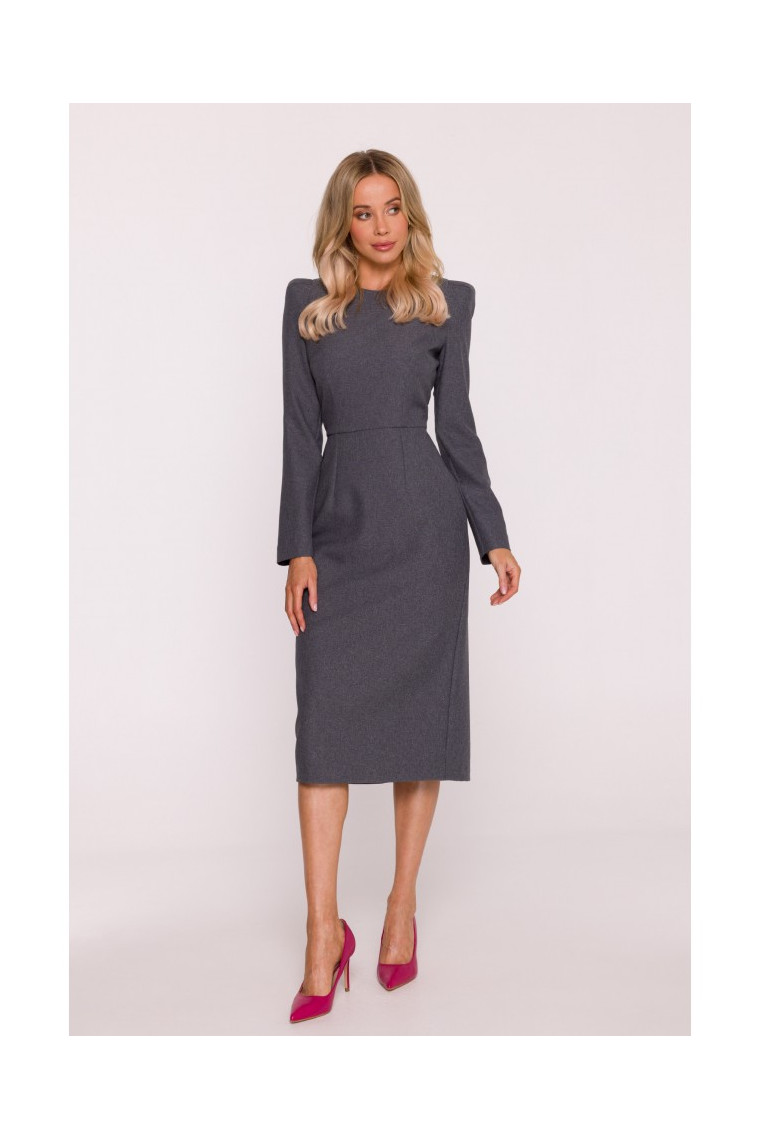 Stylove S412 Pencil dress with decorative shoulders - grey