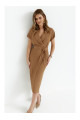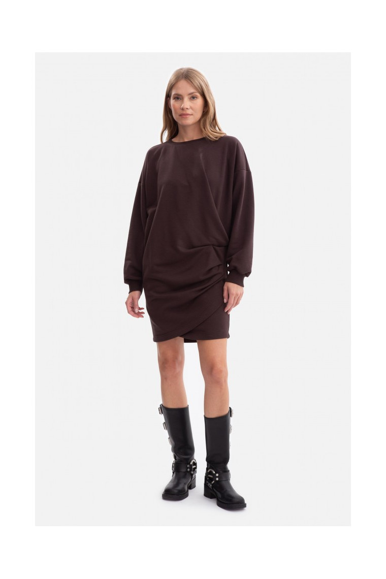 BEWEAR B298 Knit dress with side pleats - dark chocolate