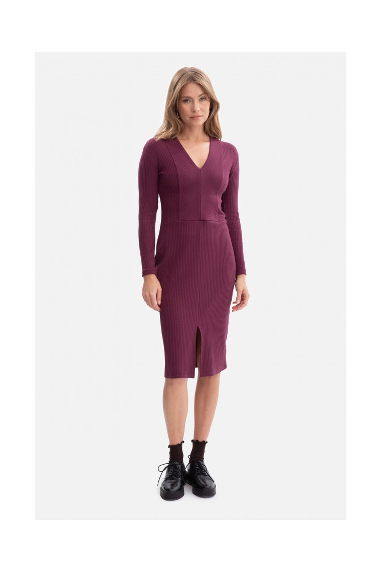 Shape: defined waist, fitted top and skirt with slit