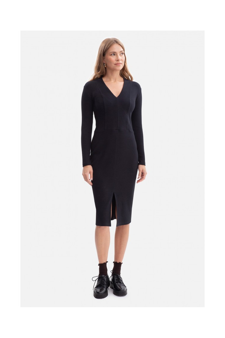 Shape: defined waist, fitted top and skirt with slit