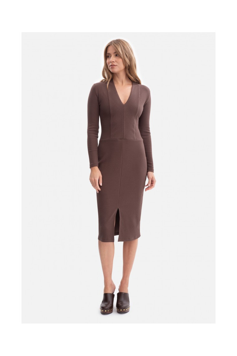 Shape: defined waist, fitted top and skirt with slit
