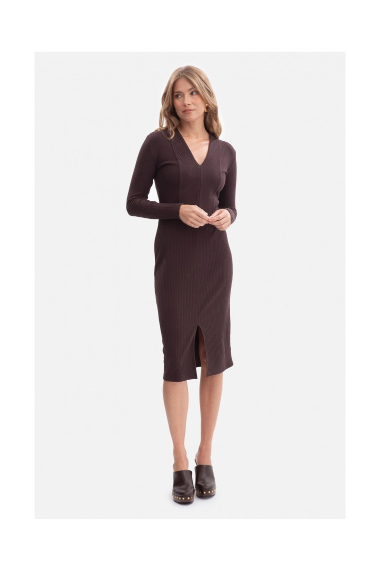Shape: defined waist, fitted top and skirt with slit
