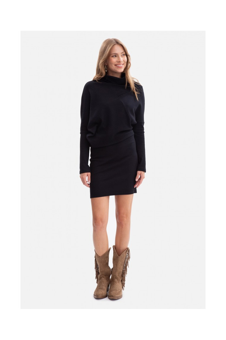 Shape: defined waist, batwing top, pencil skirt bottom