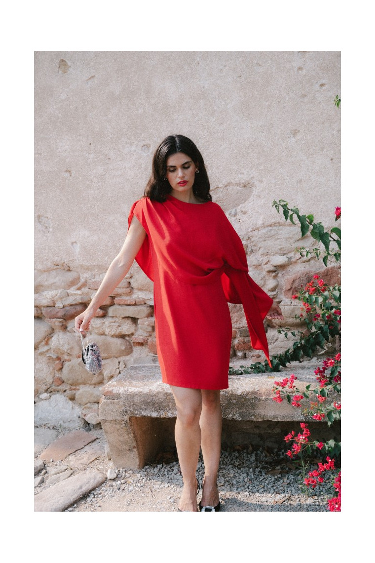 Stylove S423 Dress with cape - red