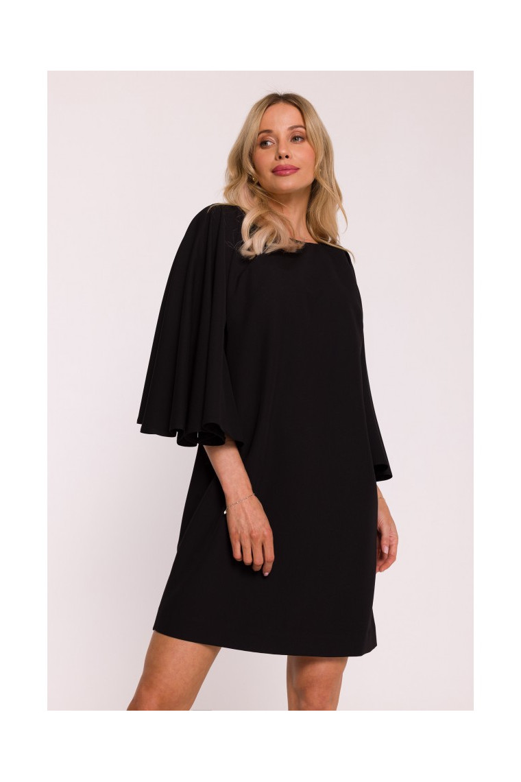 Stylove S426 Mini dress with batwing sleeves - black