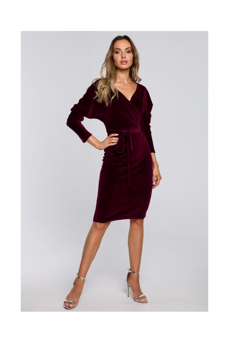 You will love everything about this dress - the wrap top with kimono-type sleeves, curve-hugging fit with a moderate stretch and a tie belt cinching the waist. The velvet fabric only adds glamorous touch to this perfect occasion outfit.