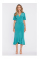 Stils: sievišķīga apmetuma midi stila kleita ar volāniem.