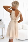 541-3 CELESTINA Eleganta tilla kleita ar dekoltē un loku - bēša krāsā