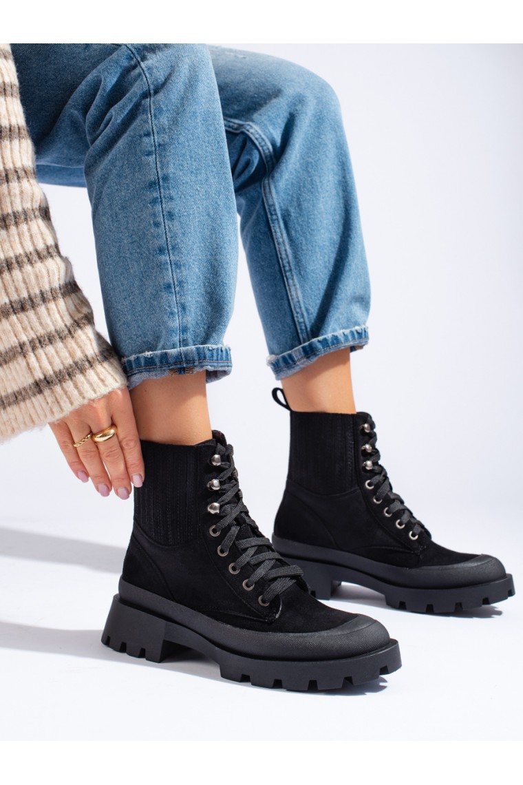 Czarne wiązane zamszowe botki ShelovetSaņēmējs :