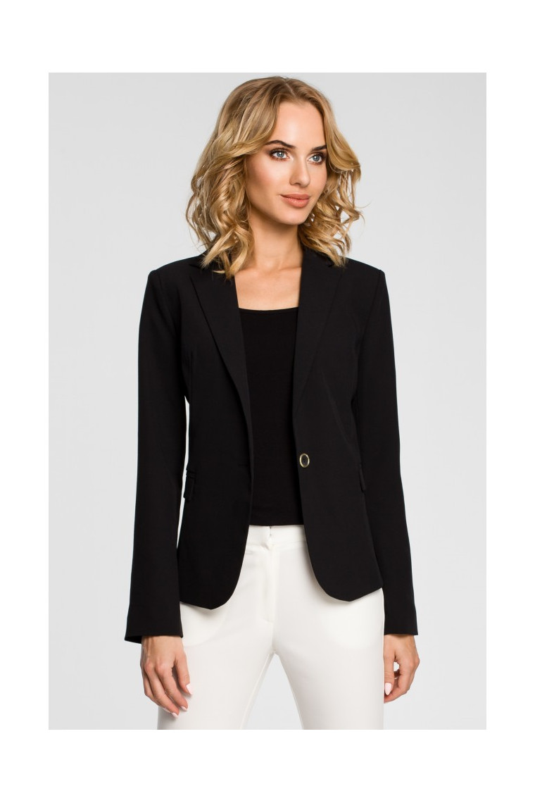 M051 Jaka ar pīķainu apkakli un aizdari ar vienu pogu - melna