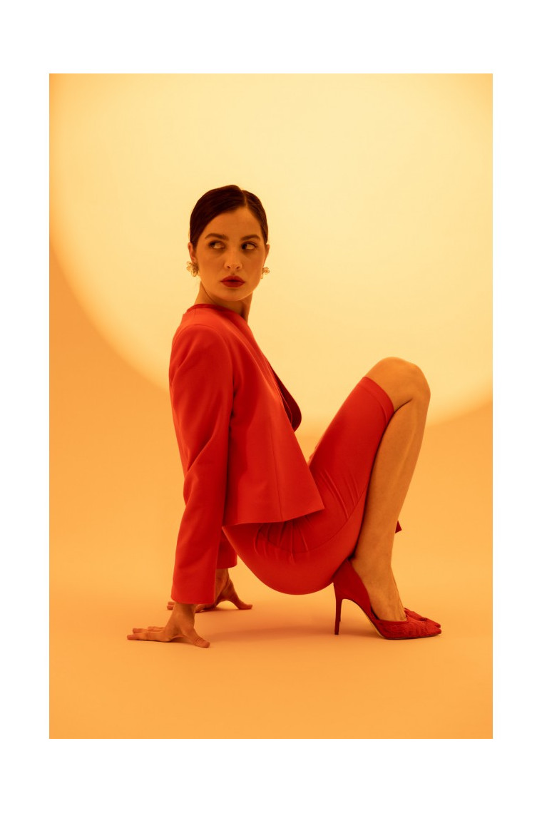 S368 Atvērtā priekšpusē piegriezts žakete - sarkans