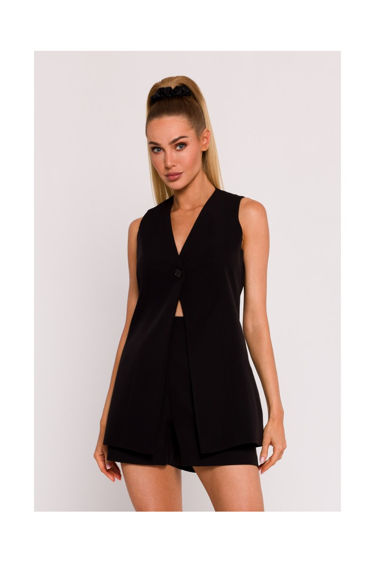 M776 Svīteris bez piedurknēm ar vienu pogu - melns