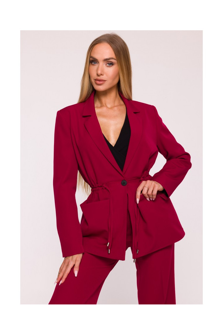 Closure: Single button and adjustable drawstring ties
