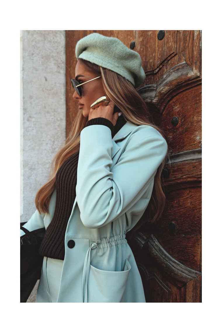 Closure: Single button and adjustable drawstring ties