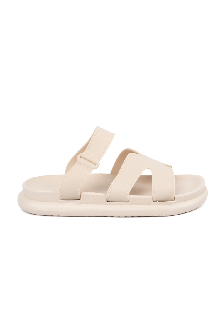 Jasnobeżowe klapki damskie na płaskiej podeszwie