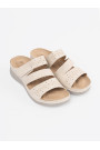 Lekkie jasnobeżowe klapki na niskiej koturnie