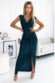 451-1 Shiny dress with short sleeves, neckline and a slit on the leg - green