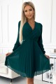 313-14 ISABELLE Pleated chiffon dress with a neckline - green
