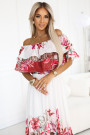 Discover feminine charm and lightness with this exceptional maxi dress in Spanish style. The top adorned with a ruffle beautifully exposes the shoulders, while the flowing bottom with floral print creates an ombre effect and attracts attention.