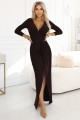 404-14 Elegant long dress with a wrap neckline and slit - chocolate brown