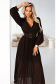 414-11 KLARA elegant pleated midi dress with a belt and neckline - chocolate