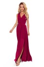 362-5 JUSTINE Long dress with a neckline and a tie - Burgundy color