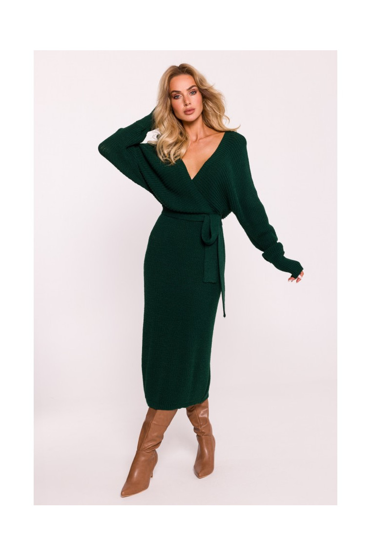 MOE M810 Платье-свитер с V-образным вырезом - зеленый