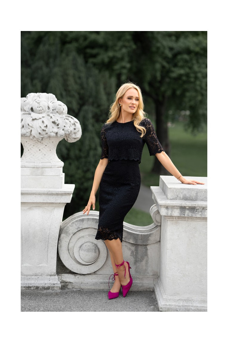 Stylove S379 Кружевное платье с двухслойным верхом - черный